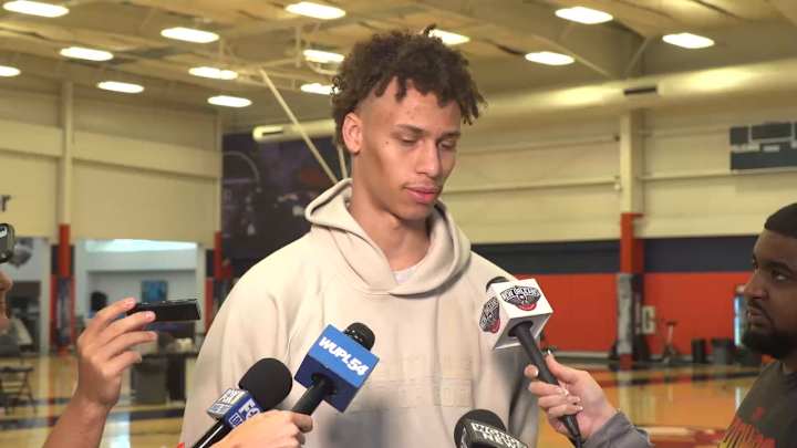 Pelicans Season-End Interview with Dyson DanielsPelicans guard Dyson Daniels speaks to the media about the end of the season.Sports Illustrated New Orleans Pelicans News, Analysis, and More|Share on FacebookShare on XAdd us on Loading recommendations... Please wait while we load personalized content recommendationsPublished Apr 15, 2023SPORTS ILLUSTRATED NEW ORLEANS PELICANS NEWS, ANALYSIS, AND MOREShare on FacebookShare on XHome/Video