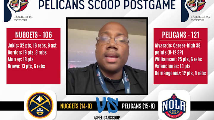 Postgame: Pelicans vs NuggetsThe New Orleans Pelicans won their fourth straight game, beating the Denver Nuggets 121-106.Sports Illustrated New Orleans Pelicans News, Analysis, and More|Share on FacebookShare on XAdd us as a preferred sourceLoading recommendations... Please wait while we load personalized content recommendationsPublished Dec 5, 2022SPORTS ILLUSTRATED NEW ORLEANS PELICANS NEWS, ANALYSIS, AND MOREShare on FacebookShare on XHome/Video