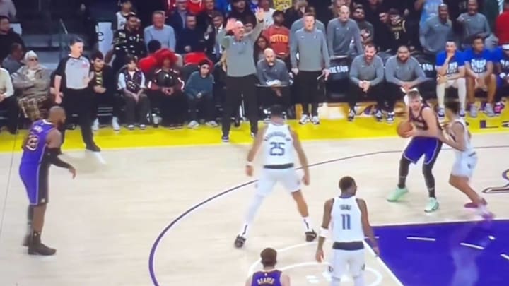 During one play, Doncic and James passed the ball to each other back and forth while each being guarded by a defender. After several seconds of this, P.J. Washington went to double Doncic to force him to make a tough shot, but he instead threw the ball back to a wide-open James at the top of the arc who easily sank a three-pointer.