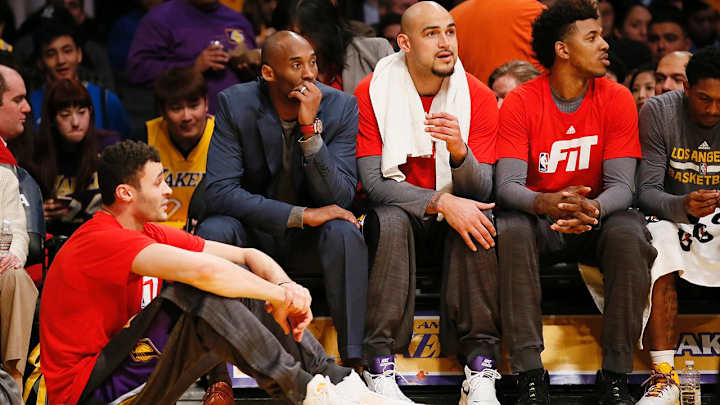 Kobe Bryant makes rookie Larry Nance Jr. sit on floor during game