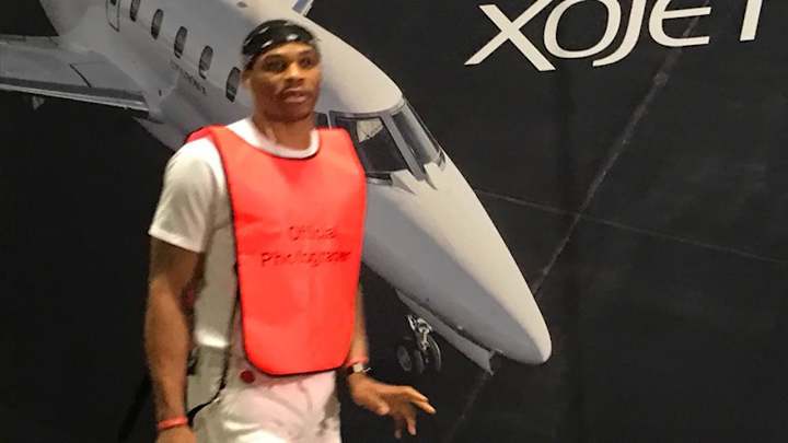 Russell Westbrook's love of fashion, not malice toward former teammate Kevin Durant, drove him to wear a photographer's vest to Thursday's game.