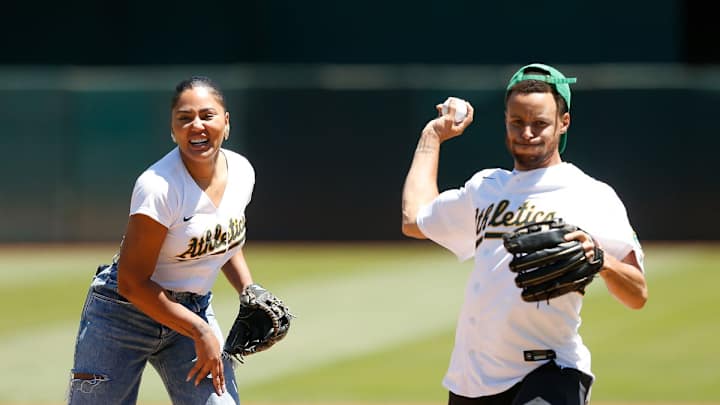 "All of my friends were teasing me about how bad my pitch was going to be," Curry said on the A's broadcast. "I wanted to throw some heat, and when I got up there I felt the presence on my right side, but I didn't really know how I could do the release and whatnot, so that's why I went a little to the right. I'm glad he picked it up out of the dirt and didn't make me look bad."