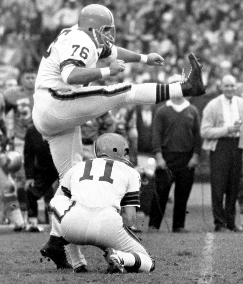 Lou Groza was a nine-time Pro-Bowl pick and was named a first-team All-Pro every season from 1952 to 1955. At 36, Groza suffered a back injury that forced him to miss the entire 1960 season, but came back the next year...as a kicker. Groza kicked for the Browns until he retired at 43, in 1967.