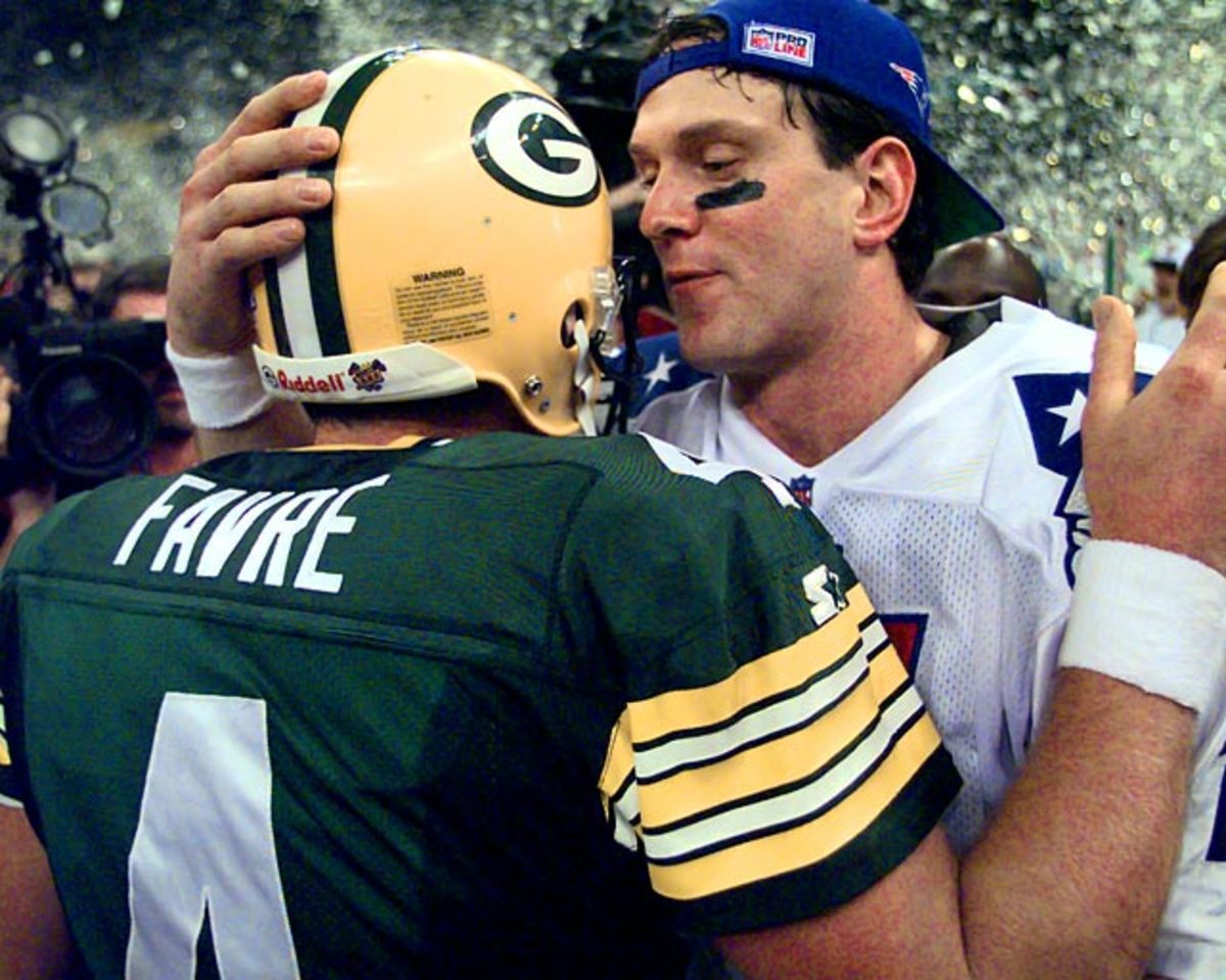 Drew Bledsoe and the Pats couldn't keep up with the Brett Favre-led Packers, falling to Green Bay 35-21. Bledsoe had more completions and threw for more yards than Favre, but he tossed four interceptions to Favre's zero.