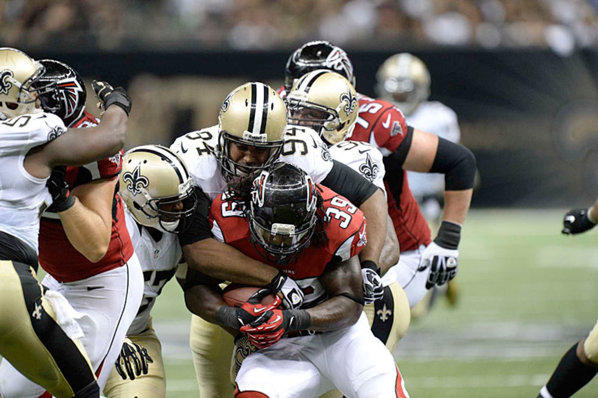 Cameron Jordan (94) and the Saints held Atlanta to 88 rushing yards in the opener; overall New Orleans is fourth in the league in total defense. (Greg Nelson/Sports Illustrated)