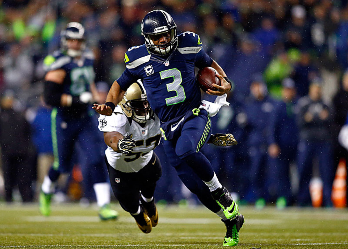 New Orleans had no answer for Russell Wilson, who outplayed his hero Drew Brees and ran and threw circles around the Saints’ defense. (Jonathan Ferrey/Getty Images)