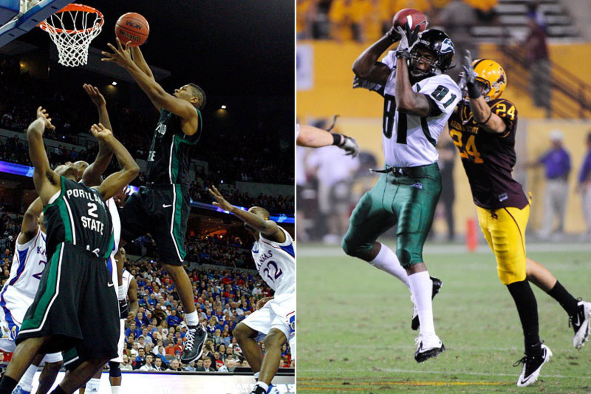 On the field, everything was new, right down to how to catch a football. On the first day of catching passes, his hands were too far apart and at least one ball went caroming off his face. He knew nothing of blocking footwork, or route-running. For the guy who set a Portland State record for basketball games played (121), it was humbling.