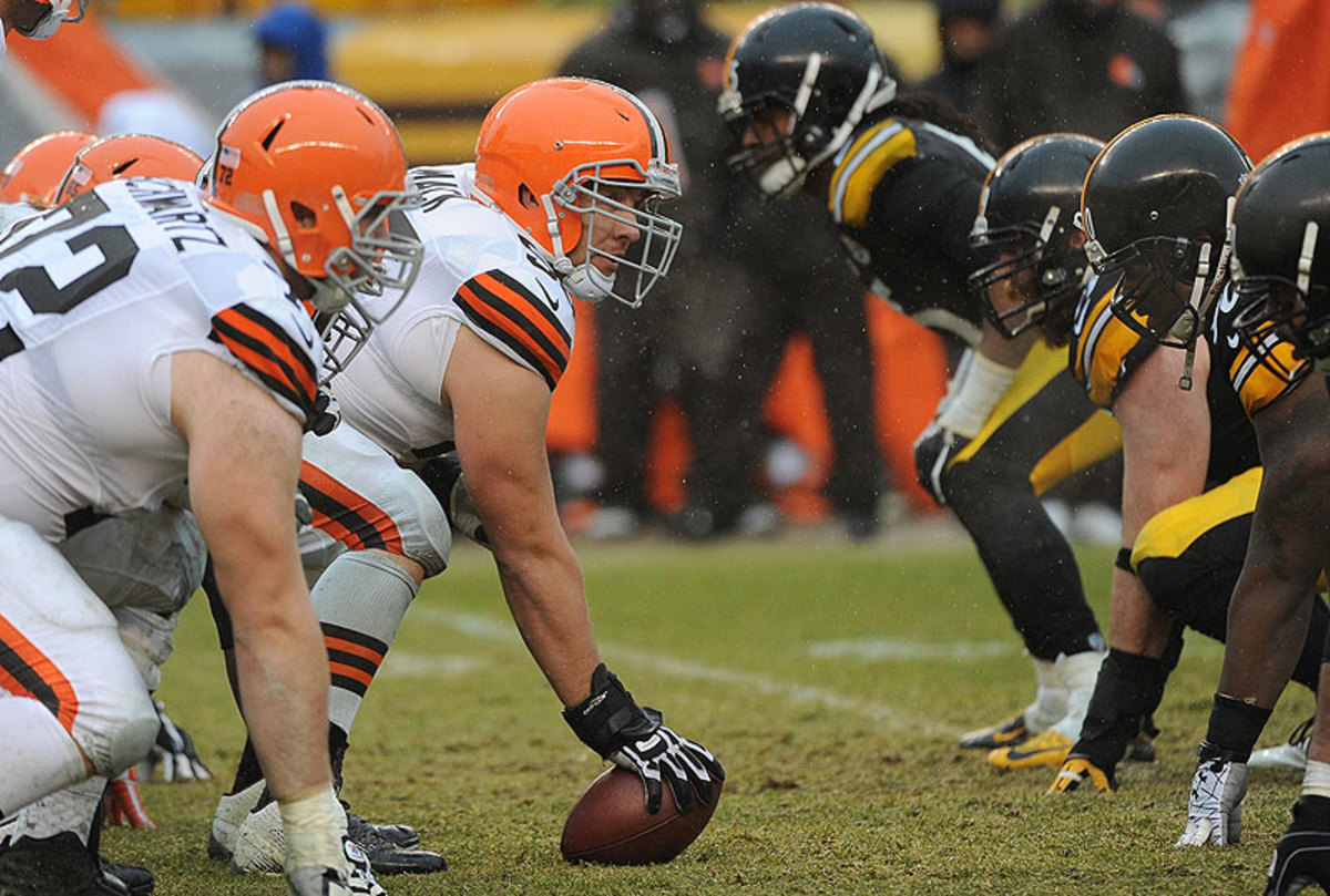 Alex Mack will be front and center for the Browns for at least the next two years, when he will be paid $18 million guaranteed. (George Gojkovich/Getty Images)