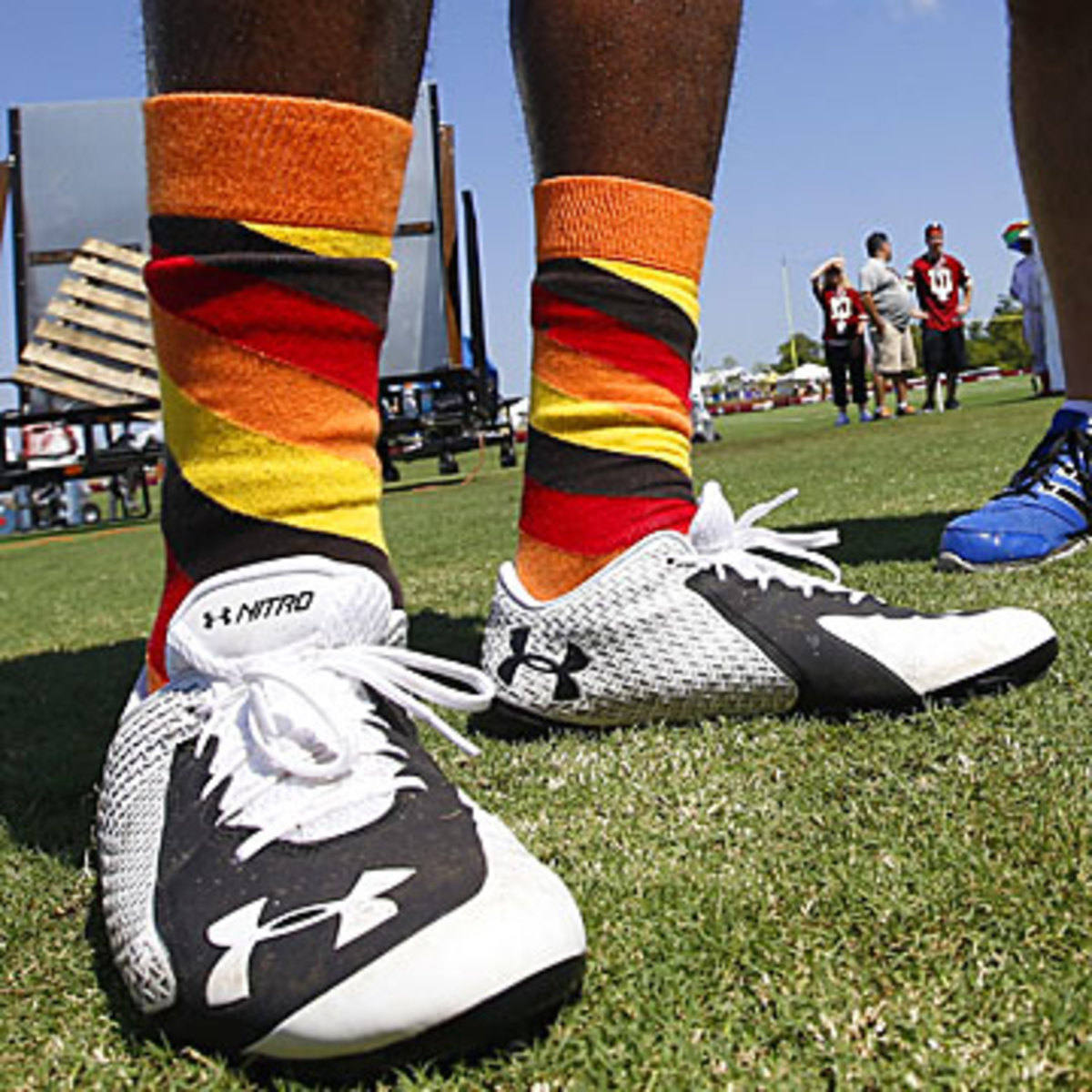 CLARK: No, man. I know you guys only think Robert has the market cornered on socks. But I was doing this before Robert Griffin III got to the NFL. I just do this for me though. I have a ton of socks with me on this trip. I always have a fun backpack of socks. My kids pick them out for me in the offseason, so I wear them when I come to camp. It keeps a little piece of them out here with me while they're at home.