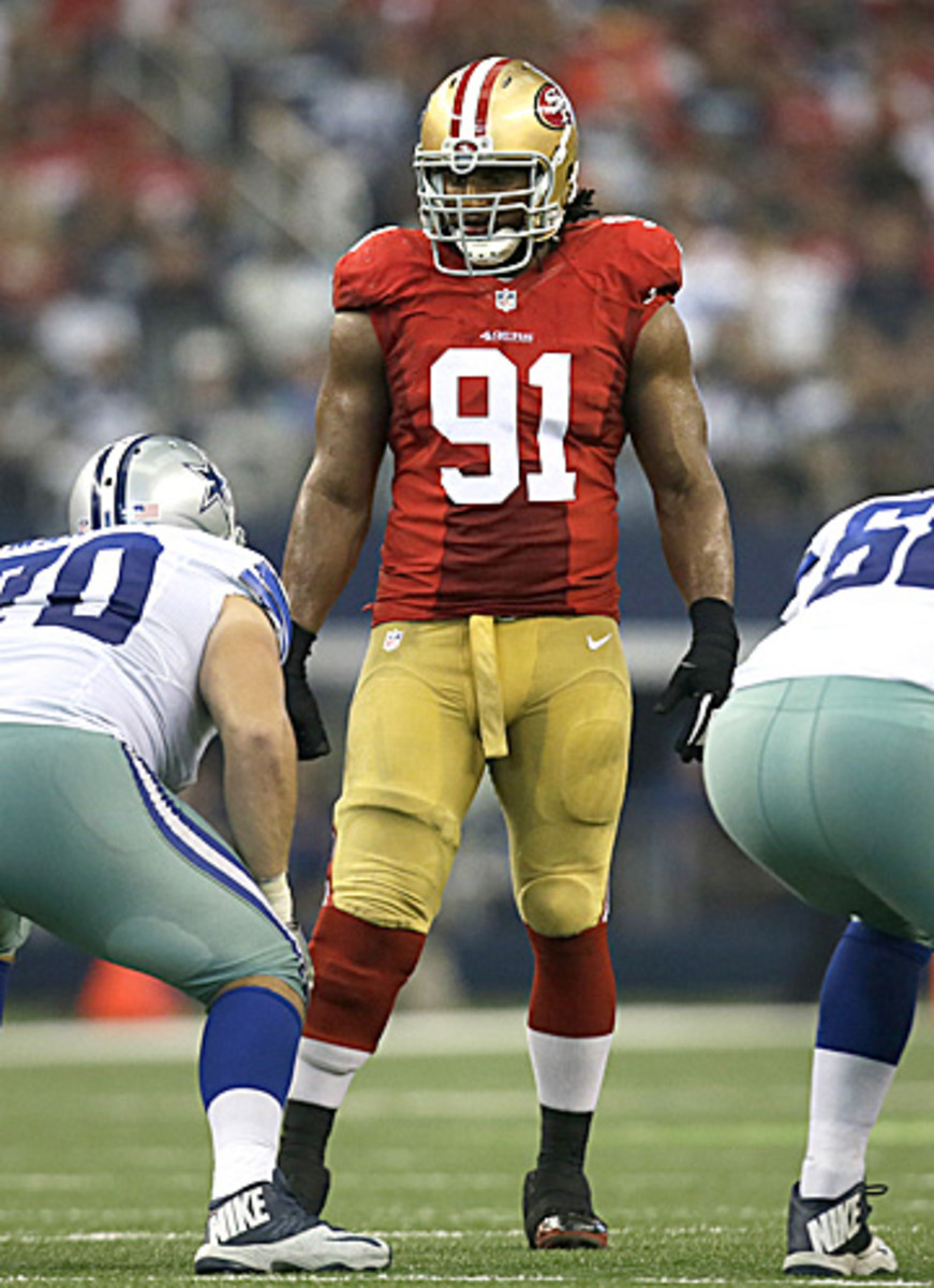 Despite facing felony domestic abuse charges for allegedly striking his pregnant fiancée, McDonald was on the field in Dallas for the 49ers’ opener. (Tony Gutierrez/AP)