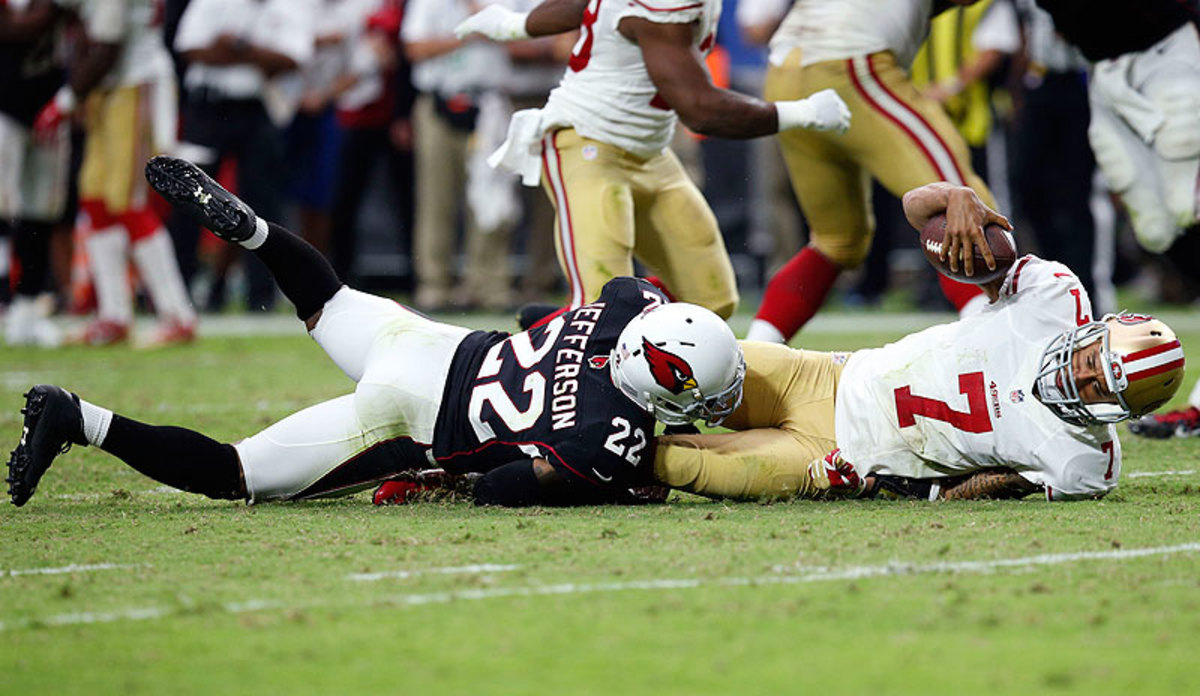 • Todd Bowles is catapulting himself into contention for a head-coaching job. Consider the job Bowles has done as the Cardinals’ defensive coordinator. His best linebacker, Daryl Washington, is suspended for the year after another violation of the NFL’s substance-abuse policy. His best pass-rusher, John Abraham, just went on IR with concussion issues. Last year’s defensive leaders, Karlos Dansby (free agency to Cleveland) and Darnell Dockett (on IR), are both gone. In came Bowles, preaching an attacking style, and the players ate it up. “We’re going to be an offensive defensive team," he said in training camp, and that’s what they’ve become, allowing just 45 points in three games—none in the fourth quarter. He’s done it with only one premier player left on the front seven, defensive end Calais Campbell, by mixing up blitzes (rookie Deone Bucannon has been terrific as a change-up blitzer) and using all his puzzle pieces well. The only sack in Sunday’s 23-14 win over San Francisco came from undrafted free safety Tony Jefferson. Everyone keeps telling the Cardinals they’ve lost too much to be a formidable defense. Bowles won’t let his players hear it.