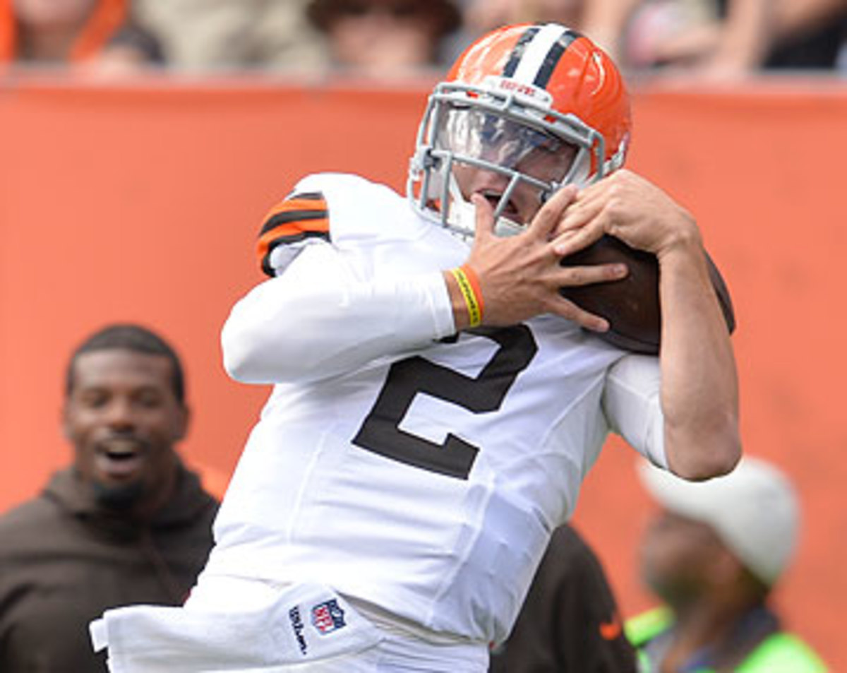 • The Johnny Manziel play should have drawn two penalties, not one. You may have seen Manziel slyly talking to offensive coordinator Kyle Shanahan near the sideline on Sunday, then take off downfield and catch a long pass. The crowd in Cleveland went nuts. But running back Terrance West was flagged for not being set at the snap of the ball, negating the play. What should have happened is that Manziel should have been flagged for unsportsmanlike conduct. Players cannot line up less than five yards from the sideline in the team’s own bench area—and Manziel certainly was that close.