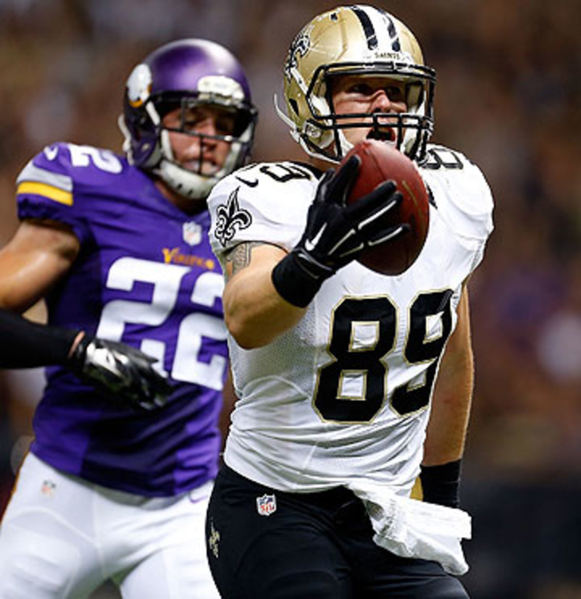 f. Mike Zimmer’s going to go nuts today when he watches tape of the Saints’ second TD, Drew Brees to backup tight end Josh Hill. As wide open as a lumbering tight end could be.