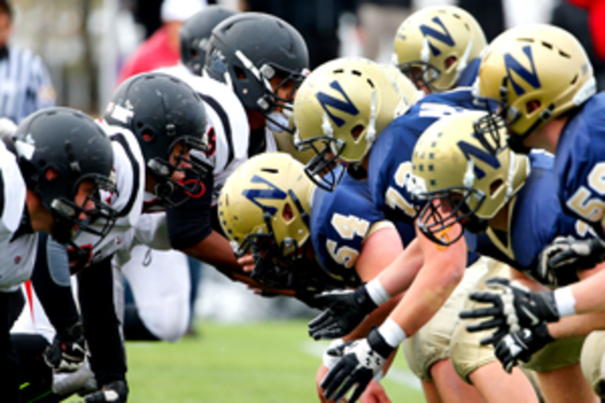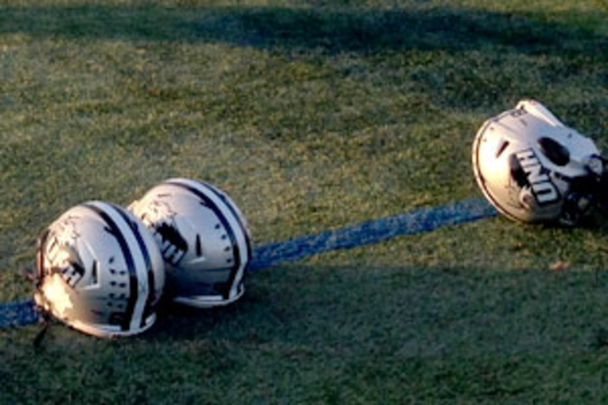 The University of New Hampshire football team, the best in the FCS, is about to practice tackling. But before doing so, 25 players drop their helmets on the turf. Head coach Sean McDonnell stands careful watch, barking commands into the chilly New Hampshire air.