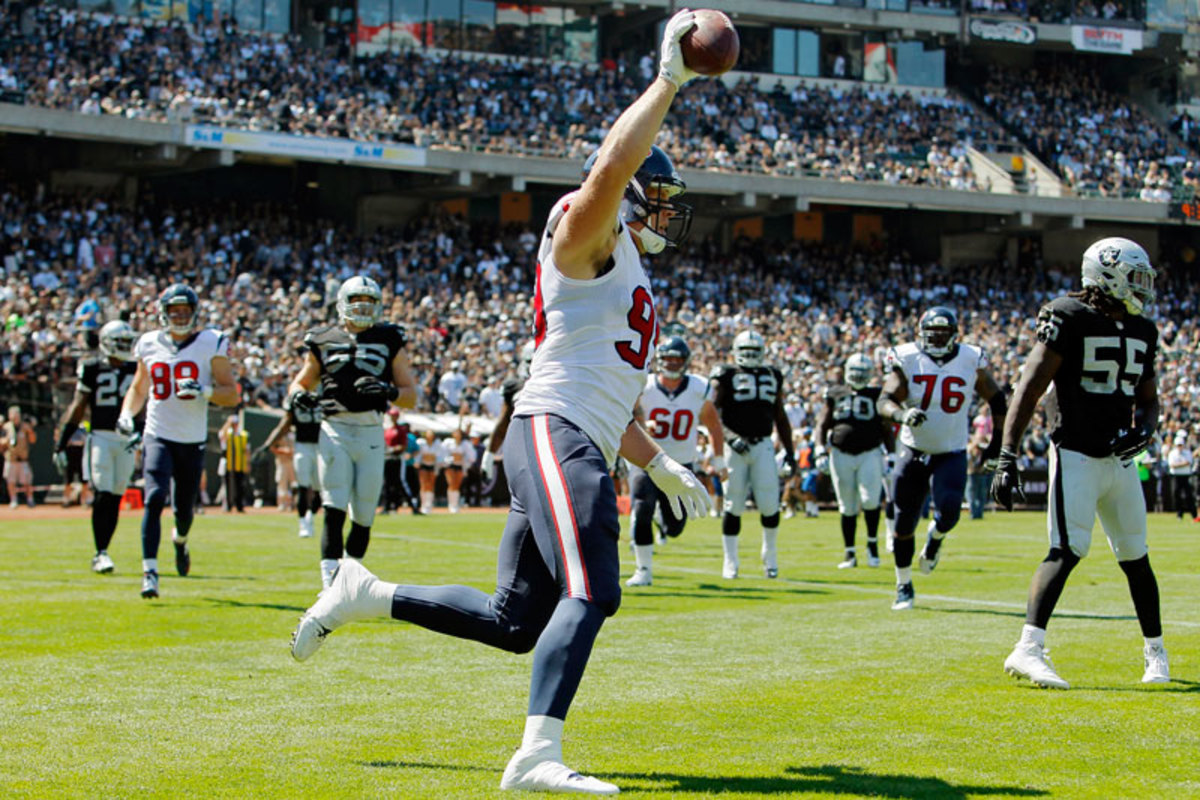 The first of Watt’s 2014 TDs came on a 1-yard catch at Oakland in Week 2. (Brian Bahr/Getty Images)
