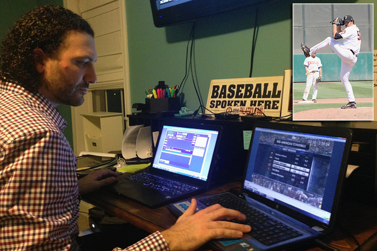 A former minor league pitcher, Steve Palazzolo had always been interested in baseball’s sabermetrics and stumbled upon Pro Football Focus while looking to see if the same tools existed for football fans to better understand the game. (Jenny Vrentas/The MMQB and Palazzolo/Courtesy photo)