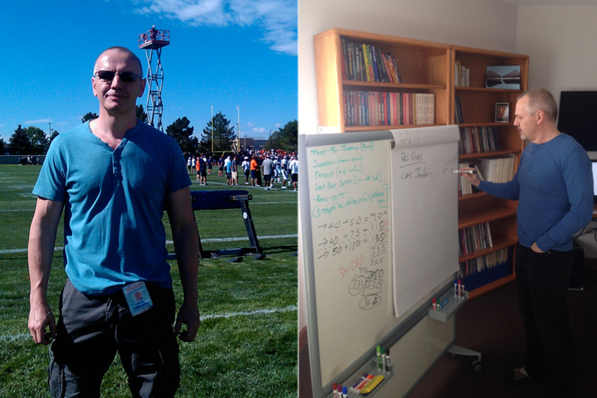 In 2012, Hornsby abandoned his consultancy business and took an 80% pay cut to focus on growing Pro Football Focus. He’s spent the last few years adding to his staff, traveling to NFL cities (including trips aboard The MMQB’s training camp RV, which Peter King explains in this week’s Monday Morning Quarterback column) to pitch his product to coaches and front offices. Collinsworth’s stake in the company is why Hornsby moved his wife, Claire, two sons, Alex and Ethan, and dogs Jess and Molly to Cincinnati, where Collinsworth played for the Bengals and still lives.