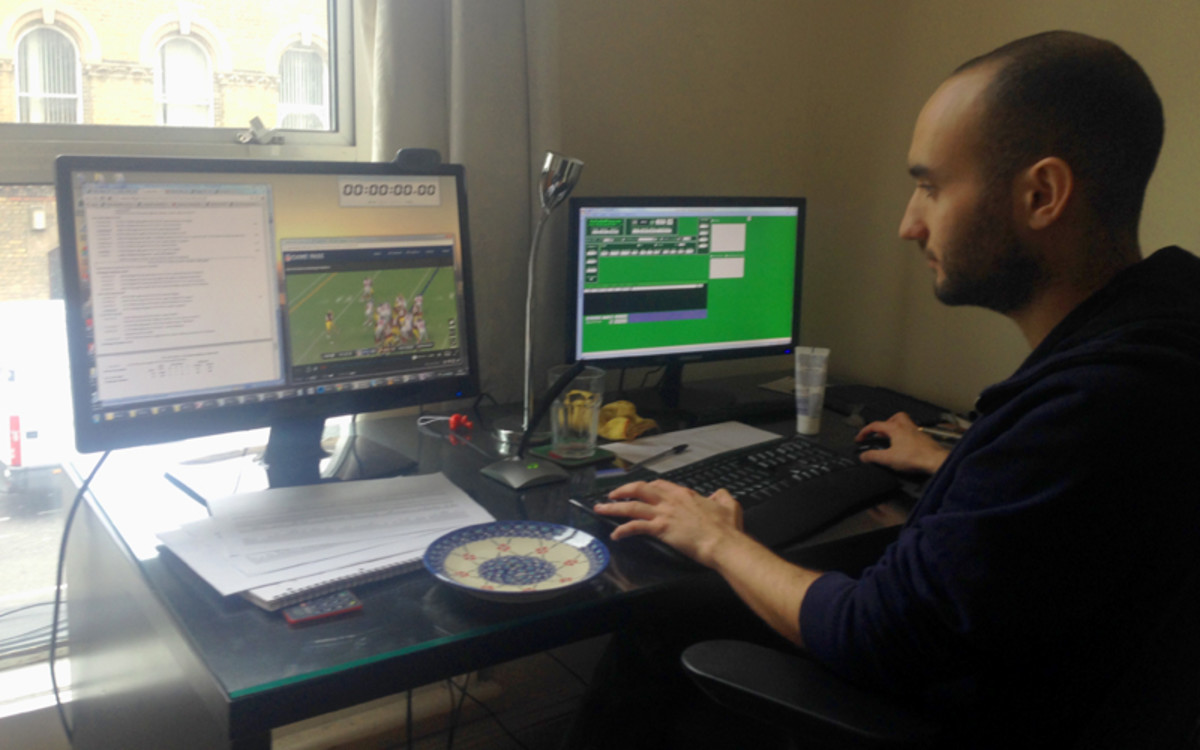 Based in London, Pro Football Focus’s Khaled Elsayed charts the Washington-New York Giants Thursday night game in September. (Jenny Vrentas/The MMQB)