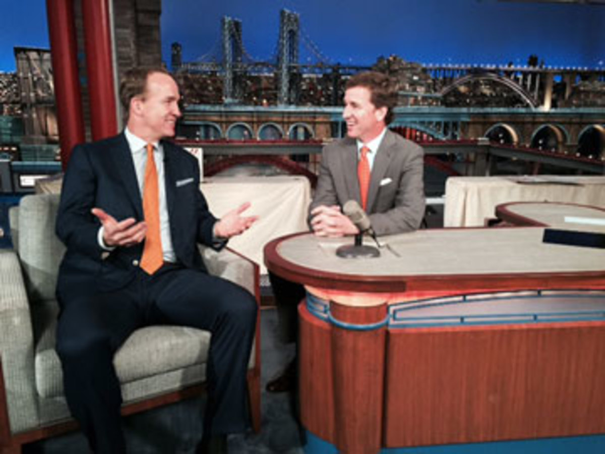 It’s funny, but my favorite memory of Dave—and what I think says so much about him as a person—didn’t come from one of my appearances on the show. (I was on four times as a guest, and then again on Wednesday’s finale.) It came soon after I signed with the Broncos—actually, on the day before the draft in 2012, when the Colts were sitting there with the first pick.