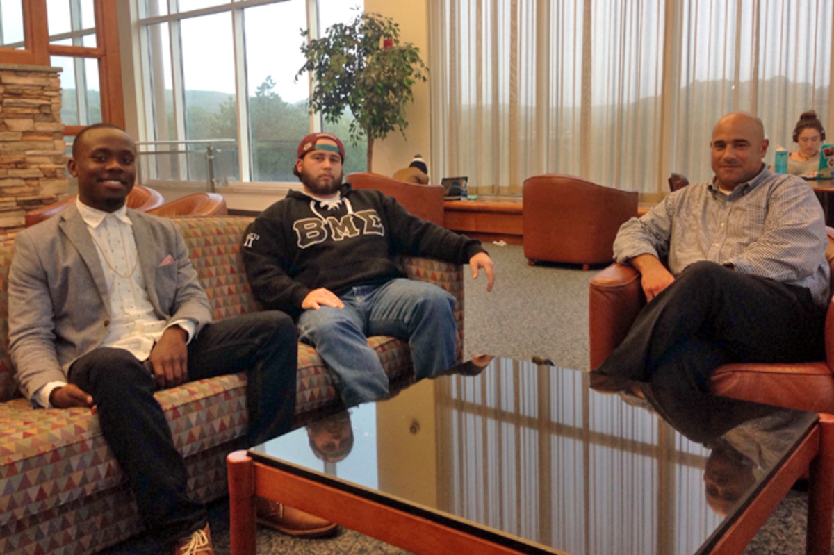 “It’s embarrassing,” he says, looking around the student center at Southern Connecticut State University, making sure no one is listening. “I take my DraftKings notes on my off days.”