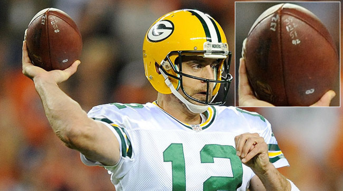 A hearty tip of the hat to reader Bob Mullen, who saw a photo of Aaron Rodgers earlier this season and asked an astute question: What's with those number markings on the football?