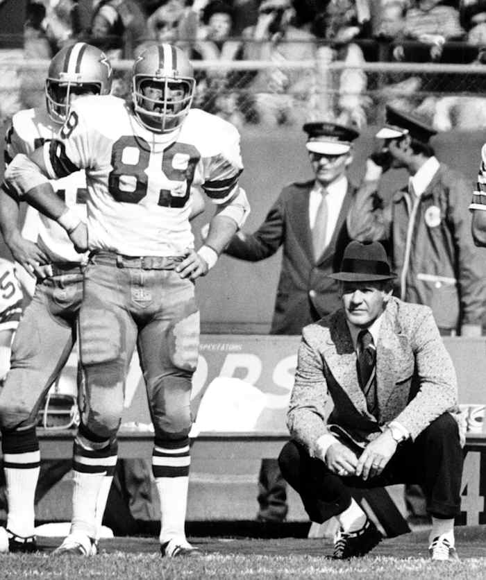 Ditka and Halas were like father and son. Like father and son, they fought. Halas warned Ditka about his carousing; Ditka mocked his mentor for his stinginess—“The old throws around nickels like they’re manhole covers.” Ditka was an All-Pro in Chicago and led the team to an NFL championship in 1963, but Halas traded him away for almost nothing in 1967. (Talking to a reporter, Ditka had cracked wise about Halas’s Czech heritage—“I called him a cheap Bohemian,” Ditka wrote—a red line for the old man, who promptly banished his tight end.) Ditka played two forgettable seasons for the Eagles and then ended up in Dallas, where he connected with the other great coach in his life, Tom Landry.