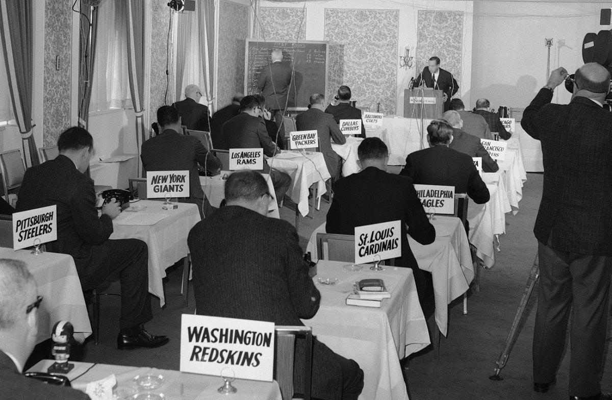 VRENTAS: On Thursday, the NFL draft will begin on a stage in Chicago, in front of thousands of fans, broadcast in primetime. What was the scene like 60 years ago?