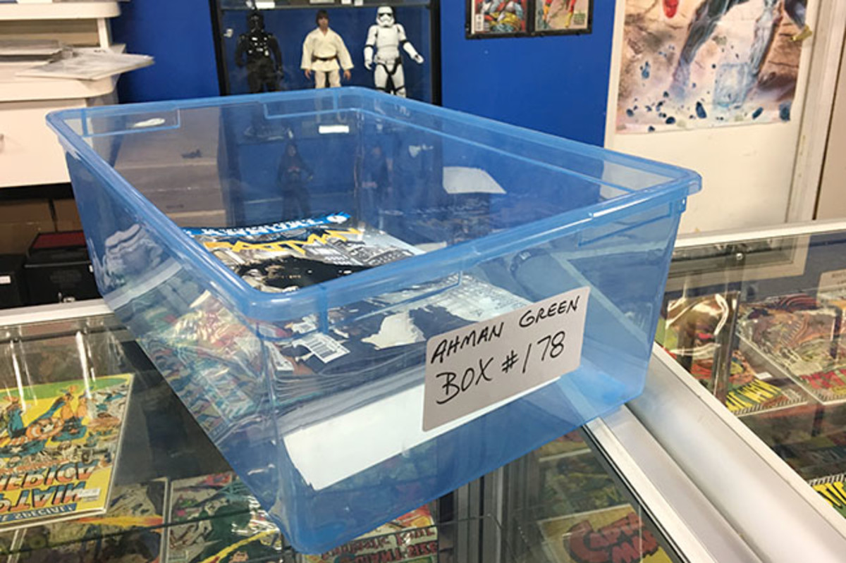 On a recent Tuesday, he pulls up in front of one of his favorite stores in Green Bay, Powers Comics, his lifted truck towering over the other vehicles. “They know when the big, black, iron truck pulls up what is about to go down,” he says with a laugh. Shortly after he walks in, store owner Dave Powers brings Green a plastic bin labeled, Ahman Green Box #178. A Batman comic book sits on top of stack. Green has come to pick up his subscriptions.