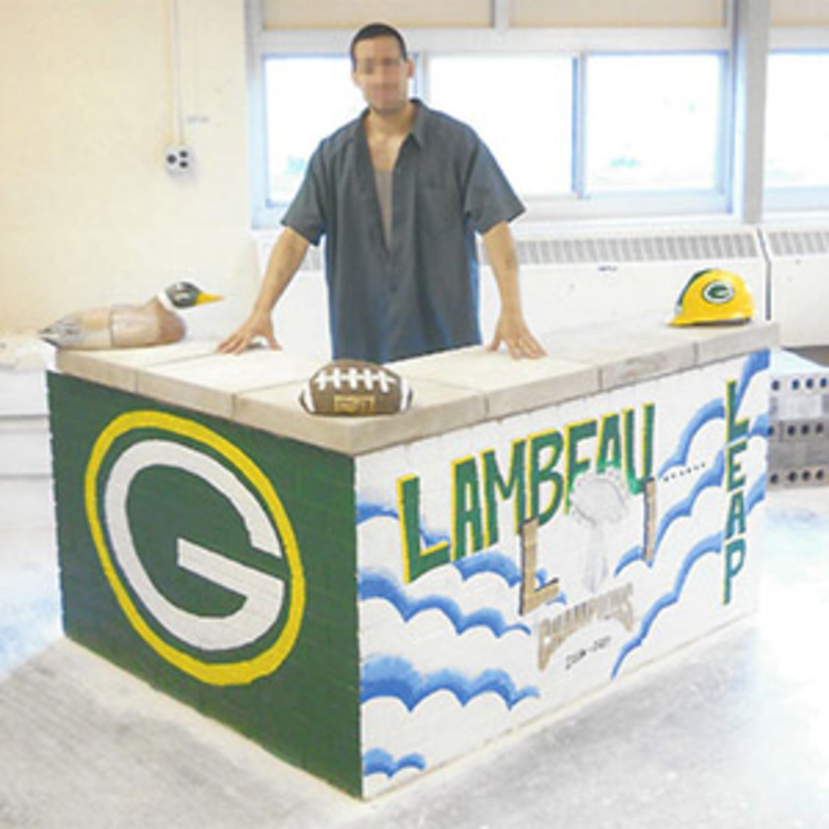 One inmate recently displayed his love for the Green and Gold in a masonry project he built as part of the GBCI’s vocational program. The project called for him to build a plain brick wall. “For the average student, you build the wall and you are done,” Father Jim says. But this inmate had a different idea. He’s artistic, so he painted the wall with Green Bay’s logo and a Super Bowl 51 championship fantasy. He frequently sends Father Jim his drawings, knowing his priest will likely share them with Packers players at game-day mass. (Father Jim did share pictures of the masonry project.) “It is the inmates’ way of intersecting with the players,” Father Jim says. “Every now and then a player will ask me, ‘How is so-and-so doing?’ ”