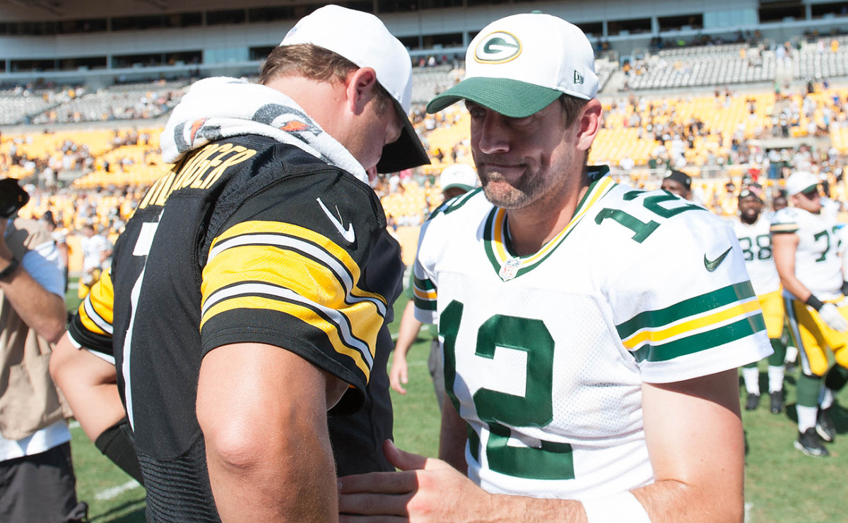 • A rematch of a great Super Bowl. In Super Bowl 45 at the new Cowboys’ stadium in Arlington, Aaron Rodgers outlasted Ben Roethlisberger 31-25 in a great game highlighted by some big-time throws. Rodgers was hurt when the two sides played in 2013; Pittsburgh won that one at Lambeau 38-31. In 2017, they’ll meet at Heinz Field. One other note: One of the great games in recent NFL history happened in the only other Rodgers-Roethlisberger meeting at Heinz Field. In 2009, Roethlisberger threw for 503 yards in the Steelers’ 37-36 cliffhanger victory. What a bum Rodgers was that day. He threw for only 383, and three touchdowns.