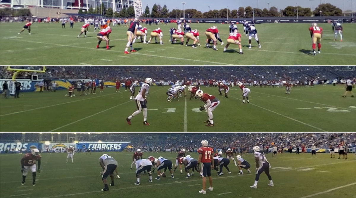 Starting in the 2016 preseason, STRIVR began building a library of clips that officials can watch, repositioning its cameras to capture the view from each of the seven officiating locations. “The perspective that a fan might want in virtual reality is different from an official, as is the perspective of a particular position, a quarterback or linebacker,” says Damani Leech, VP of football strategy and business development at the NFL. The database is now up to 500 clips, and features footage of half a dozen teams, including the 49ers, Cardinals, Rams and Broncos.