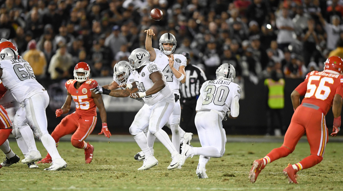 At that moment, the Chiefs were 5-1, with a three-game lead on the 2-4 Raiders. What made the situation more dire for Oakland: Games away from home loomed against Buffalo, New England (in Mexico City), Kansas City and Philadelphia in the last 10 games. A fifth loss, and the playoffs would be nearly an impossible dream for Oakland, as Romo said.