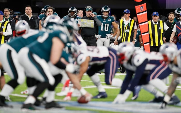 It’s a common trap teams fall into when facing the Pats: playing scared or taking themselves out of their own game. But Pederson didn’t hesitate to use a trick play the coaching staff had drawn up before the NFC title game and had repped only a handful of times. It had always worked, players said, but never as well as it did on Super Bowl Sunday.