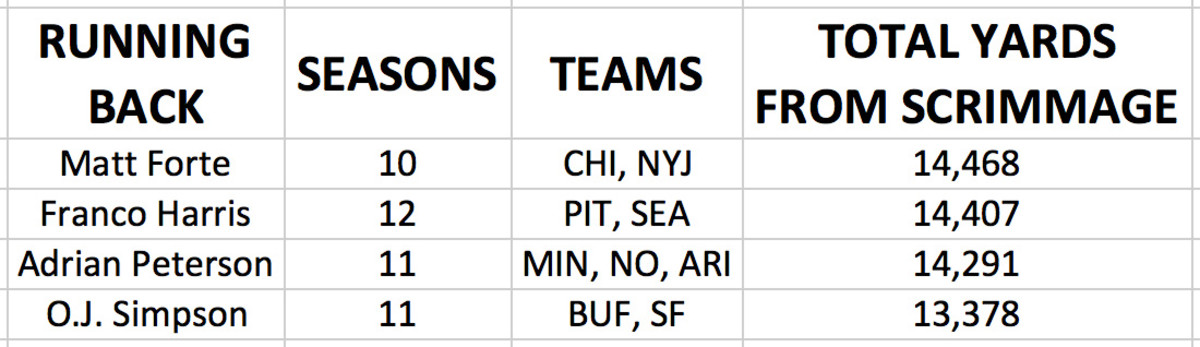 We’re quick to move on to The Next Big Thing when NFL players retire. Let’s not do that so fast with Matt Forte, who announced his retirement last week. Here’s what he did in his 10 NFL seasons: