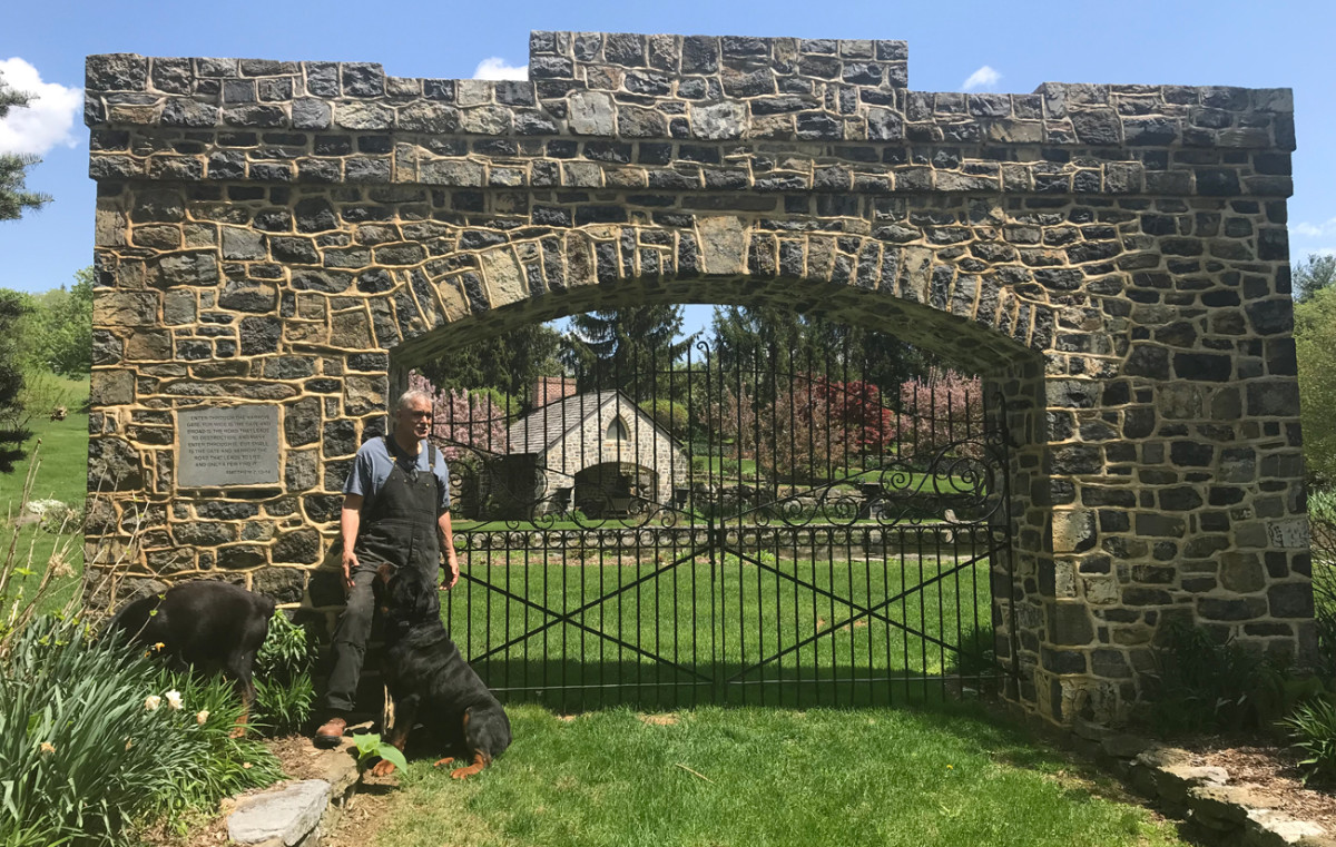 Early in the afternoon of my visit, Millen seemed tired. Time to go. But he had one last thing to show me back outside: a gate, a beautiful stone arched gate, with a Bible verse he finds telling in his life. He pointed to it.