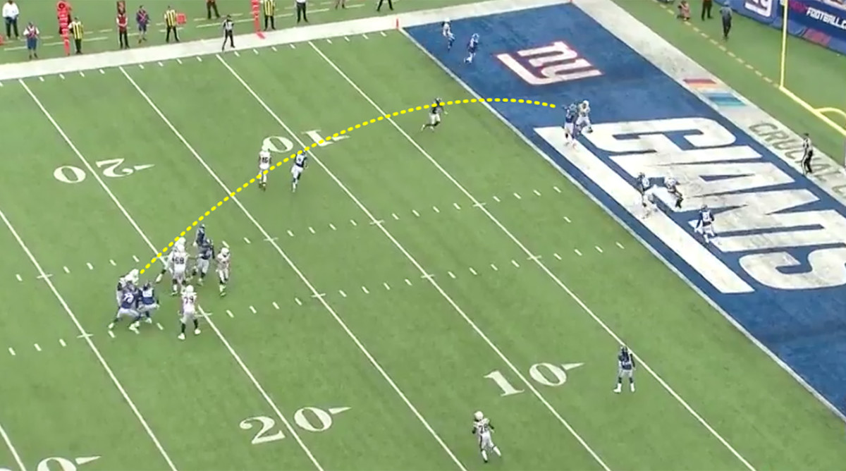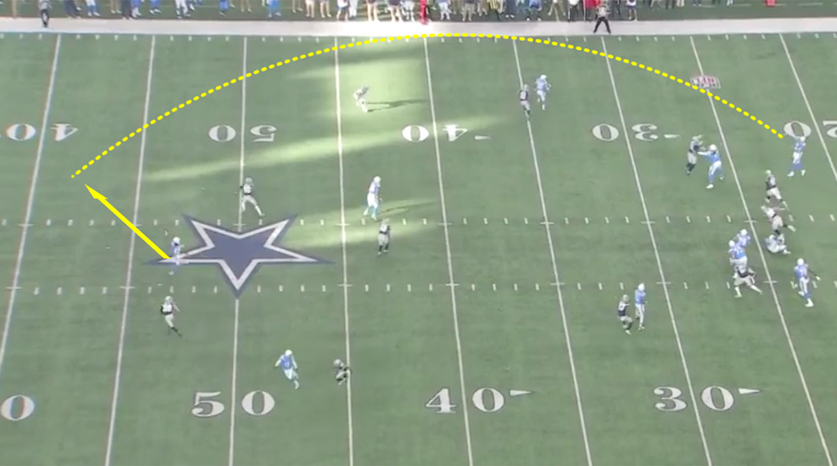 We bring up a play from that game against the Cowboys, Thanksgiving 2017. It was the day’s fourth snap—well before the no-huddle cat-and-mouse game ensued.