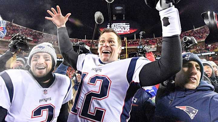 Brady may have slipped up in his postgame on-field interview, but he was flawless down the stretch during the AFC Championship. The five-time Super Bowl champion threw for 348 yards and a touchdown in the victory, completing 30 of 46 passes.