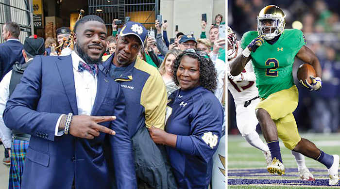 Cheryl is typically hospitalized every two months or so because her myasthenia symptoms escalate to the point where her respiratory system starts shutting down. To prevent this, she receives intravenous immunoglobulin treatments (immunoglobulin are antibodies found in blood plasma). While in South Bend living with Dexter, she missed her twice-a-month IVIG treatments, but her symptoms never got severe enough to require hospitalization. Even though he missed the first four games, Dexter thrived last season. His 995 rushing yards and 13 total TDs both surpassed his numbers from his first three seasons combined. He was the centerpiece of an Irish offense that earned the program’s first ever College Football Playoff berth, and Williams earned an invitation to the Senior Bowl where he was named Practice Player of the Week for his position group. Mother and son both had their best seasons.