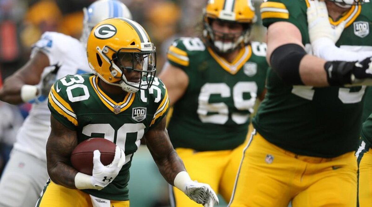 Packers RB Jamaal Williams Carted Off vs. Eagles After Helmet-to-Helmet Hit