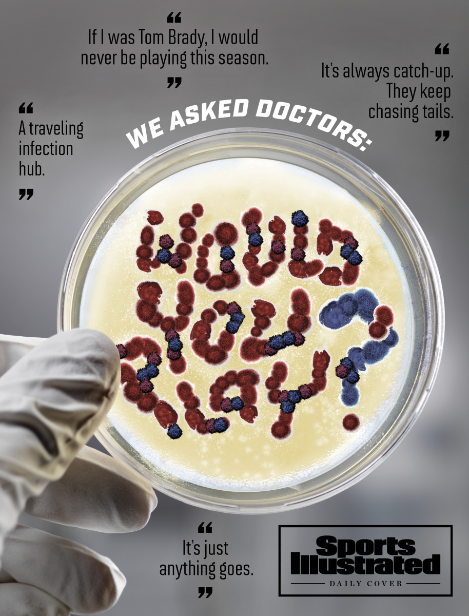 One doctor called MLB’s plan “a traveling infection hub.” Several doctors said MLB’s COVID-19 outbreaks—which have forced 14 teams to postpone 42 games—were easy to predict. Yet doctors said they would be even less inclined to play in the NFL, which has a similar plan to MLB’s, but for a more physically intimate sport. Parveen Garg, a cardiologist at USC, echoed several other doctors when he said, “You’re going to run into worse issues than what MLB’s been facing.” Only 8.3% of doctors said they would “definitely” play in the NFL if their full income depended on it. Before training camps began earlier this month, 67 players decided playing wasn’t worth the risk, opting out of the season (compared with the six, 10 and 19 players who opted out of the NHL, NBA and MLB, respectively). In light of the turbulence MLB has already experienced, many of the doctors SI spoke to doubted that the NFL will be able to play its full slate of 256 regular-season games, plus the playoffs and Super Bowl.