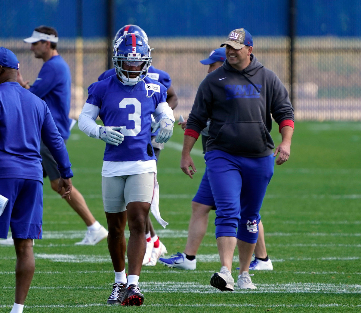 “I could hear the defense chirping, I could hear the offense chirping, I had guys in and out of huddle turning back to me, smiling, laughing—We get this, no conditioning, right?” Joe Judge said, over the cell on Saturday. “But when they went out there and broke the huddle, boom, it was all business. And that’s what I want it to look like. I want it to be good competition, enjoying the game, really loving football, and at the same time, when it’s time to work, time to be ready to go, they’re tuned in, they’re locked in, they’re ready to go.