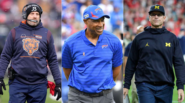 • One name that’s been connected to the Raiders consistently for the last month or so is Michigan coach Jim Harbaugh. Does he want back in the NFL? Maybe. My understanding is, despite what’s been said publicly, he wasn’t happy about having to take a pay cut last year. He accepted it only after exploring NFL openings (the Jets and Chargers were among the teams who were asked about him) and finding no interest. After a bounce-back year, and now aligned with an NFL-centric staff, there’s renewed curiosity in him from the pros. So is the NFL noise happening to make the people who made him take a pay cut last year squirm, and leverage more money out of Michigan? Or would he pull the trigger and go? It’ll be interesting to watch this one over the next couple of weeks, since he’s had unfinished business in the league (getting so close to a championship and falling just short), and leaving Michigan now would constitute going out on a high note, having beaten Ohio State and having won the Big Ten this year. He just turned 58, so it’s hard to say how many shots he has left to do it, especially if this fall’s success in Ann Arbor isn’t duplicated. Also, there are natural ties to the Raiders—he got his coaching start for them as an assistant in 2002 and ’03, and Raiders owner Mark Davis made a spirited run at landing him in ’15 (he was Oakland’s clear first choice). Harbaugh turned down Davis just before taking the Michigan job.