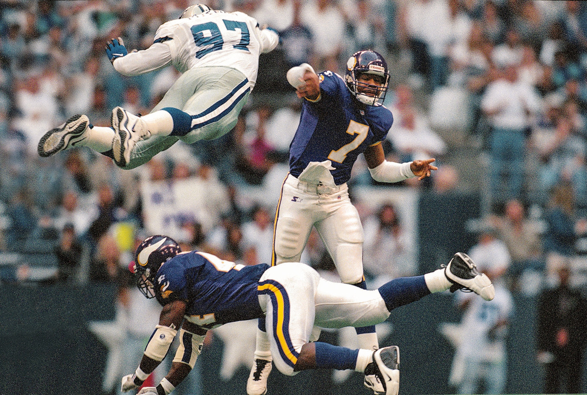 Unhappy with his role with the Eagles, quarterback Randall Cunningham retired from the NFL after the 1995 season. He took one season off, then joined the Vikings in ’97 and played five more seasons before retiring again.