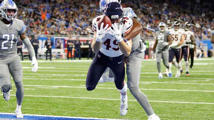Horsted made his in the third quarter to get the Bears even at 17-17 and end an 80-yard drive. He simply beat man coverage straight up the middle to the end zone and Trubisky got it to him after a fake pitch.