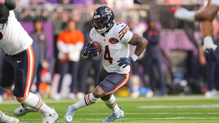 Swift finds himself in a bind this season. He has just one year left on his three-year, $24 million deal, and rookie Kyle Monangai is breathing down his neck on the depth chart. Performances like Sunday's, however, will help him fend off the hungry youngster. Swift finished with 90 yards on 21 carries and frequently made some tough carries to keep the Bears ahead of the sticks.