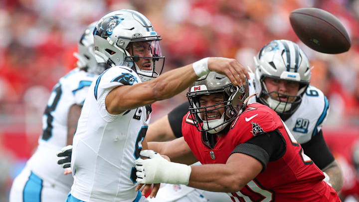 Carolina's QB1 was under siege from the jump. Chuba Hubbard's absence left the Panthers completely one-dimensional on offense, and the Buccanners took advantage. A bevy of pressure packages from Todd Bowles had the heads of Carolina's offensive line spinning as they allwed pressure into their quarterback's lap over and over again.