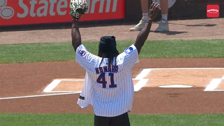 Kamara received the nod to toss the ceremonial first pitch Saturday afternoon ahead of the Chicago Cubs' matchup against the St. Louis Cardinals at Wrigley Field. His first attempt ... didn't go well.