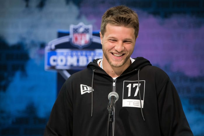 “Well we see him as a true Y (blocking tight-end). I do think for a small college player, we feel like he’s got real good inline strength. He’s also someone that that I think has got very good hips, so he's changing direction. You know, you can see that in how he sets up his routes. So for someone who played at a smaller level you see a dominant player. And, see him as someone that can help us as an inline tight-end.  And obviously, you build. In his first year build on some of the things that that we feel like he can do outside.  One of the challenges we talked about this yesterday with maybe the lack of offseason program that teams are going to have.“