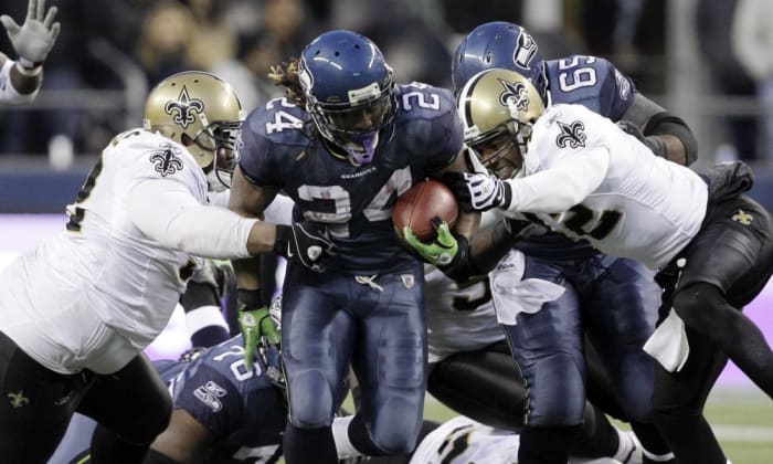 The Saints narrowed their deficit to 34-30, but desperately needed a defensive stop with just four minutes left in the game. Marshawn Lynch put the defending champs away by literally plowing through the entire Saints defense. Lynch ran through eleven tackles on his way to a 67-yard touchdown that clinched a 41-36 Seattle victory.