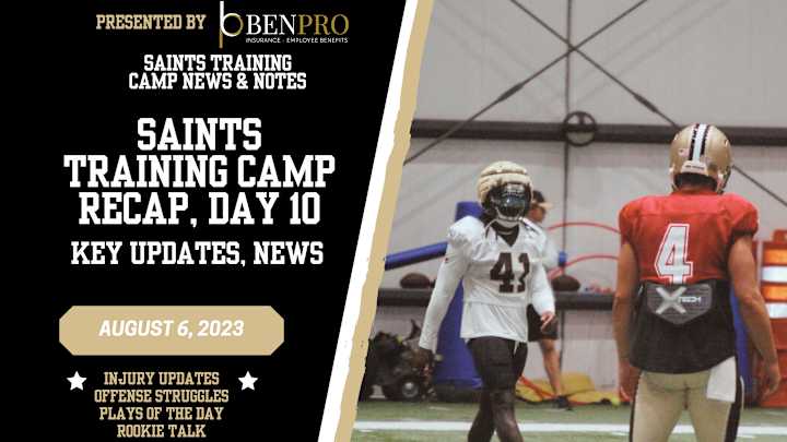 Saints Training Camp Recap, Day 10We're into double-digit Saints training camp days, and Day 10 saw the offense struggle some.Sports Illustrated New Orleans Saints News, Analysis and More|Share on FacebookShare on XAdd us on Published Aug 6, 2023SPORTS ILLUSTRATED NEW ORLEANS SAINTS NEWS, ANALYSIS AND MOREShare on FacebookShare on XHome/Video